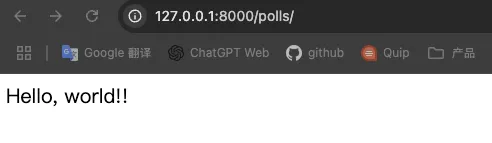 这时访问 http://127.0.0.1:8000/polls将会看到