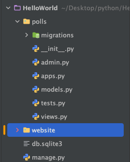 python manage.py startapp polls这将在项目下新建一个文件夹