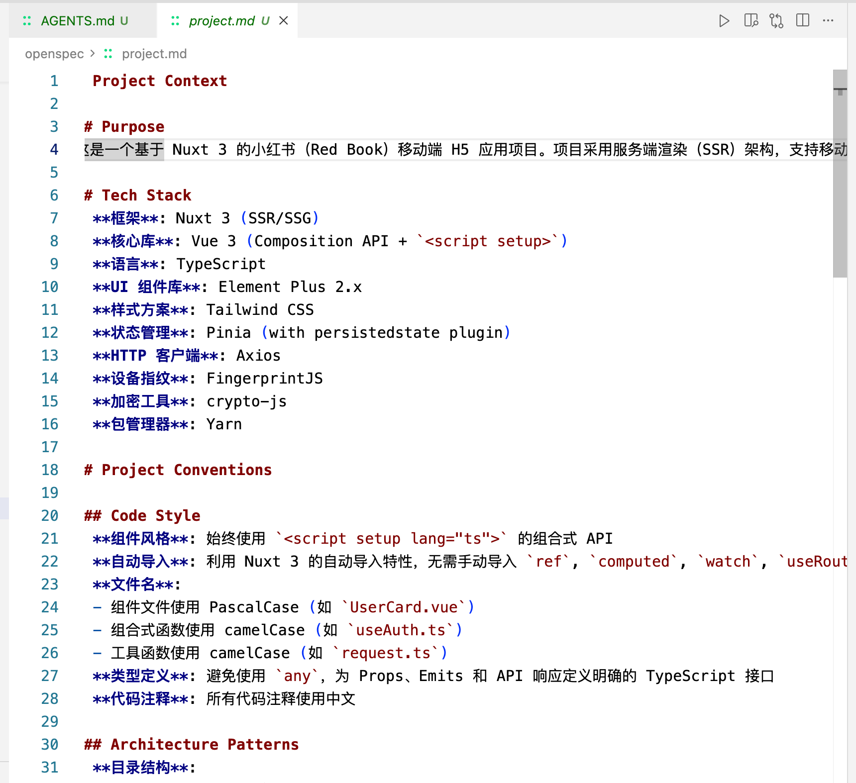 AGENTS.md在项目根目录写入一个受管理的交接文件。openspec/项目中添加了新的目录结构