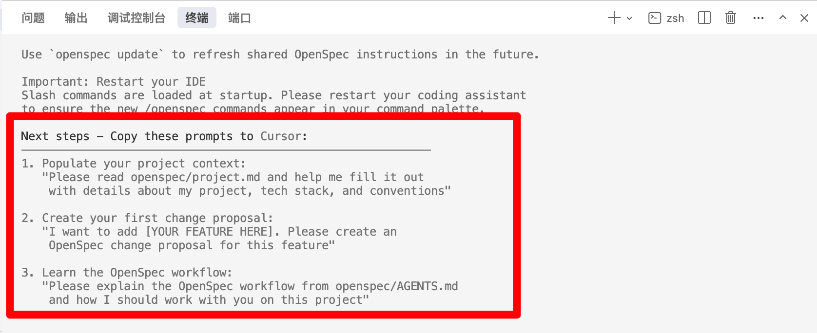 cursor 将会读取项目,并为项目生成介绍 (/openspec/project.md)