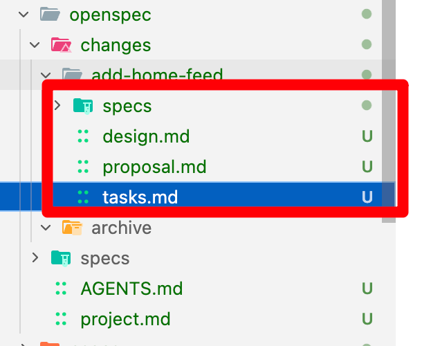 功能完成&提案归档: 功能开发完成,并通过测试,则进行归档,使用 /openspec-archive home-feed 命令进行变更归档,归档操作: