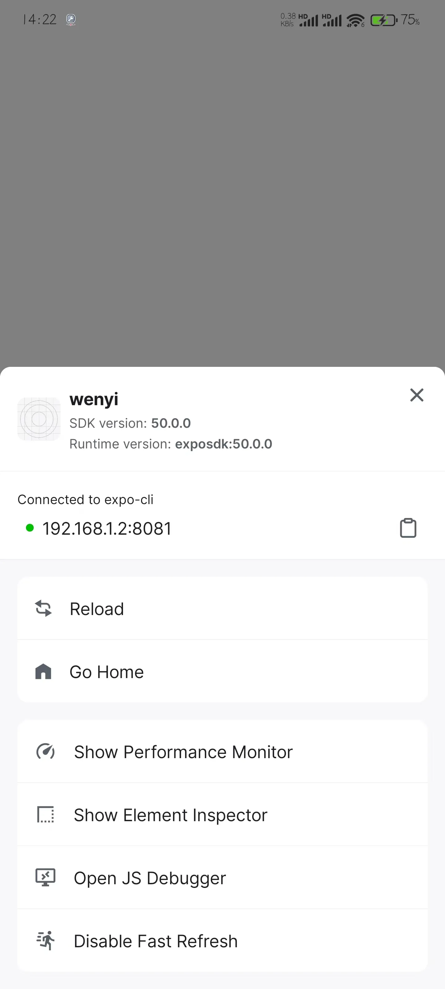 npm run start终端中点击 a ,就会发现此时安卓设备上自动打开了 Expo Go,并且进入了当前应用